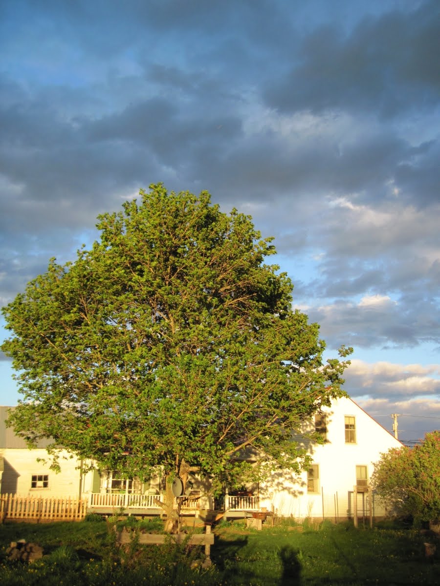 When I let the dogs out this evening for a run, the light was really neat because a storm front was coming and the sky was cloudy, while the sun was low, but still bright. I tried to capture it, semi-successfully. I was more successful at catching Boomer, Rosie was in her "I am a skulking wolf" lope and I had to track her down the road.